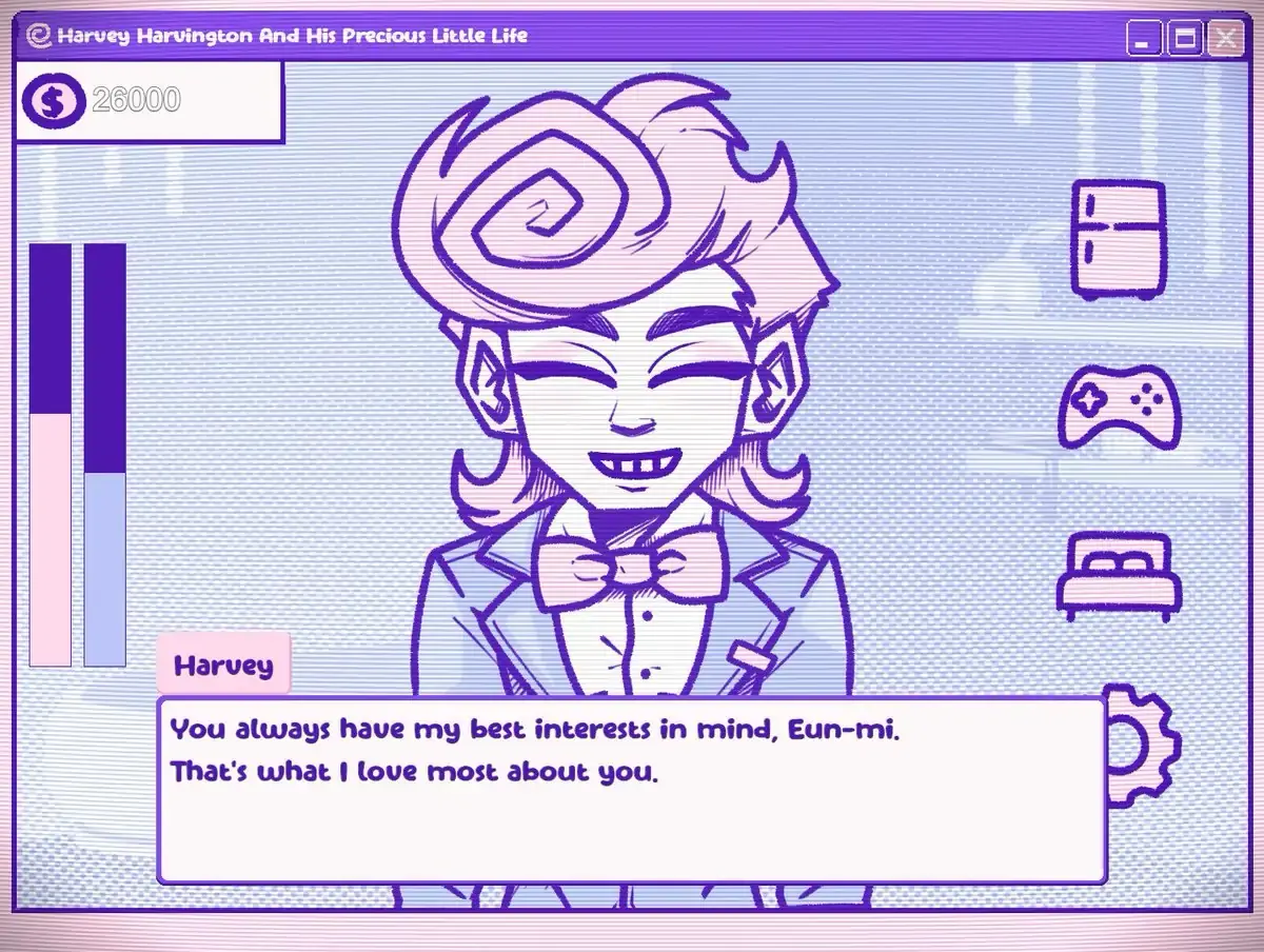 血钱2人类支出计划是一款解密的文字剧情游戏。在第二部版本中,哈维大变样,新增了养成玩法和互动剧情模式。巧妙将生存压力与道德抉择结合在一起,引发玩家对人性与生存的深刻思考。采用卡通画面设计,色彩温馨,但游戏中的打击场景和音效却营造出一种紧张刺激的氛围,这种反差为游戏增添了独特的魅力。玩家通过与NPC的互动获得金钱,这种玩法简单直接,又充满了探索的乐趣。