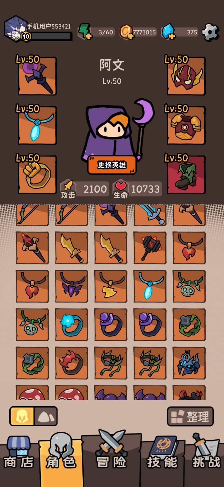 开始冒险会使用五个体力值,游戏胜利后会得到金币和其他奖励
