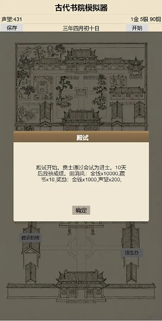 古代书院模拟器是一款内容非常精彩的模拟经营游戏,玩家可以在这里进行学院管理的操作,整体内容非常的精彩,很容易就可以快速进行体验。其中多种不同的内容可以选择,需要运用策略更好的进行挑战,你可以在这里感受独特的体验,运用智慧进行文化的传承,可以招募更多的学生,教授他们不同的知识,在这里赚取到更多的资金,不断扩大整体的面积,玩家可以在这里感受到沉浸式的体验,打造出属于自己的强大书院。