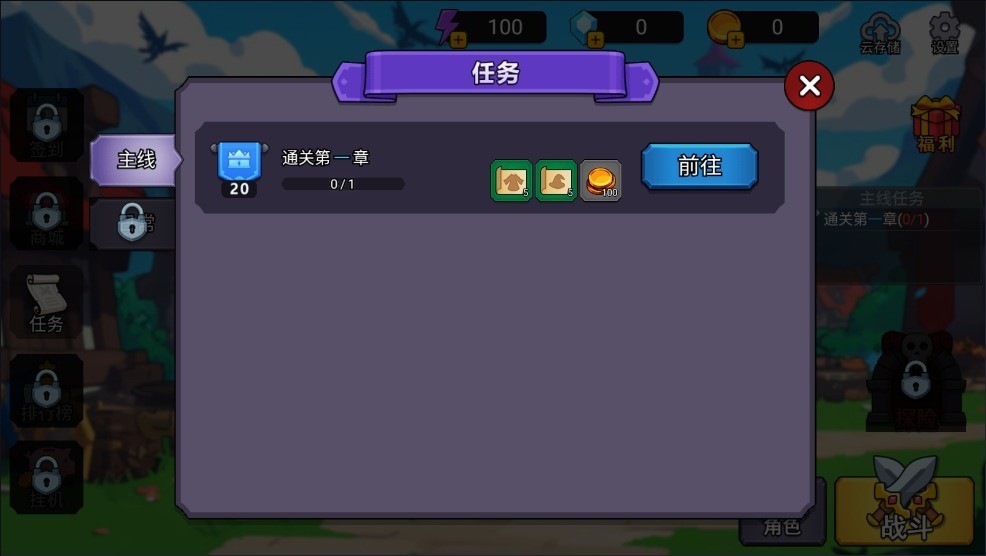2、打开任务界面,点击“前往”。