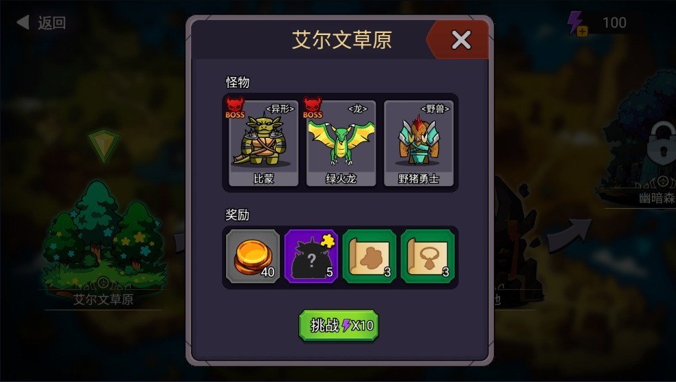 3、选择“艾尔文草原”作为初始战场,消耗体力后即可进入挑战。