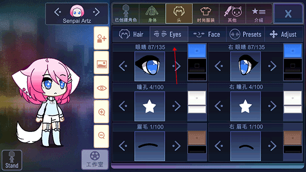 3、然后玩家可以根据自己喜好来选取角色眼睛;