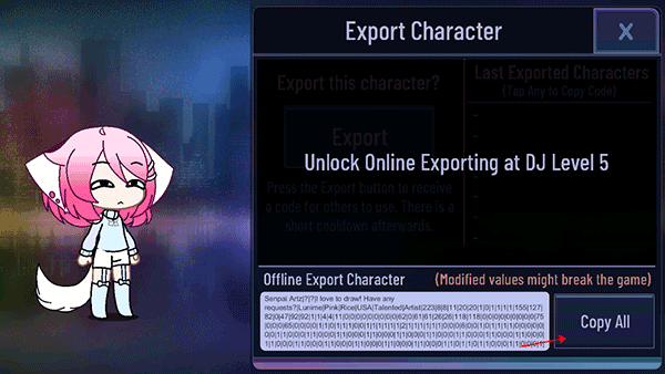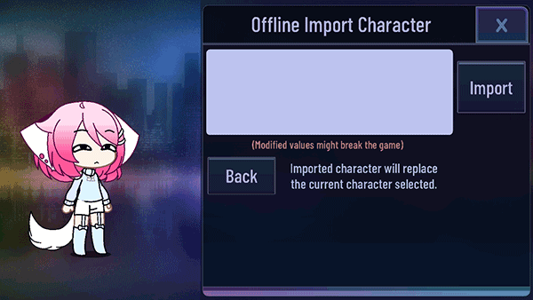 5、点那个“import”可显示人设,“Back”是清除已输入的代码。