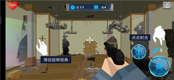 5、游戏左边控制视角,右边控制攻击,将过来的敌人击败就行。