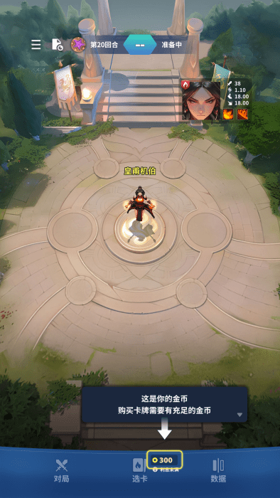 首先我们第一次进入游戏,有教程,你可以看到你的金币,只要有足够的金币就能购买卡牌。