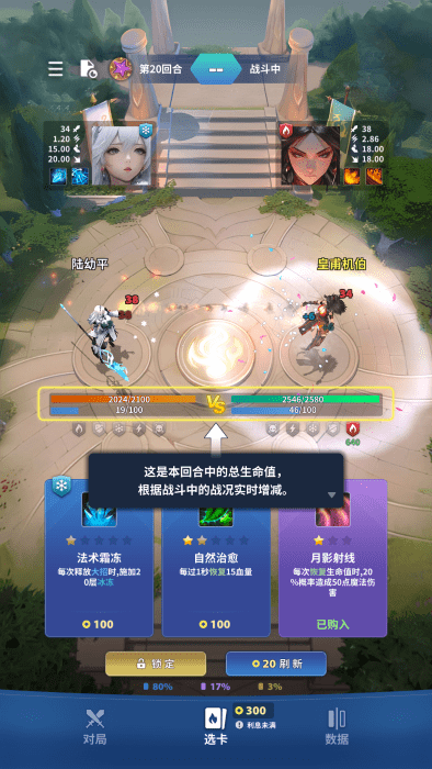 每个回合都有总生命值的显示,随着战斗状况进行增减。