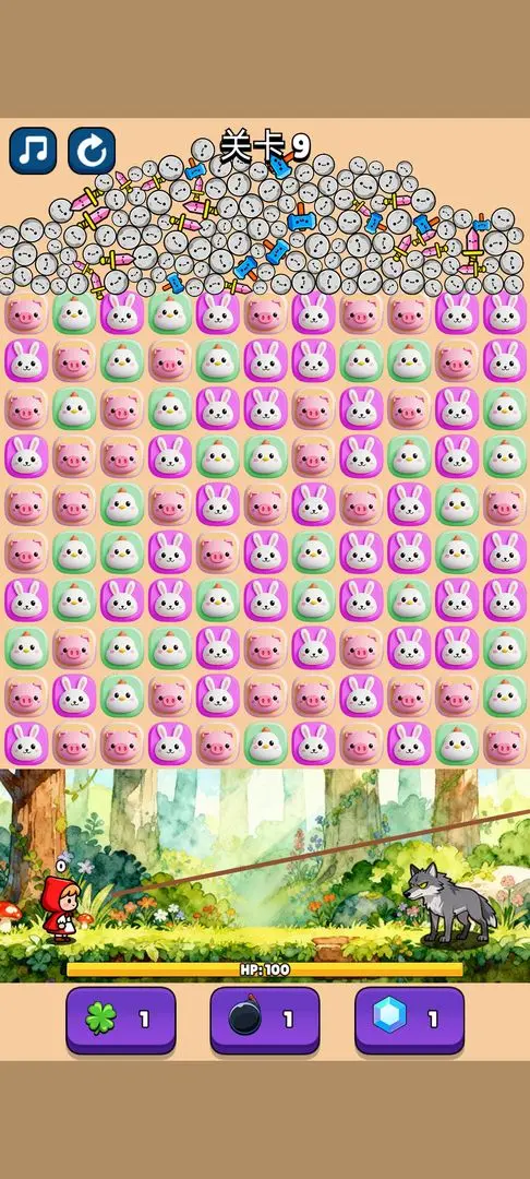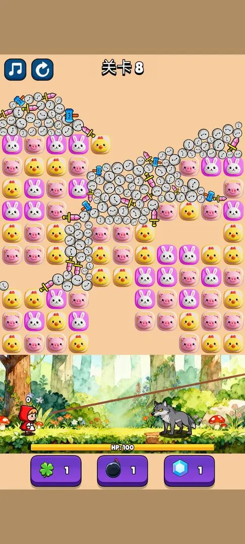 砸了个狼是一款内容非常精彩的休闲益智游戏,其中多种不同的关卡可以选择,玩家可以快速进行消除的操作,在这里使用武器打败其中的敌人。你还可以使用道具在这里更好的进行体验。游戏中的故事内容非常的精彩,很容易就可以快速进行体验。通过点击就可以快速进行消除的操作,整体内容采用卡通风格进行呈现,多种不同内容可以选择,玩家需要做的就是使用武器打败其中的大灰狼。
