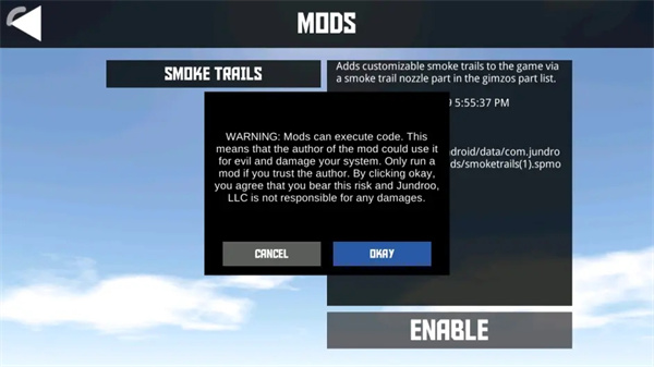 6、重新进入游戏,点击mods选项,选择第一个选项,点击okay即可。