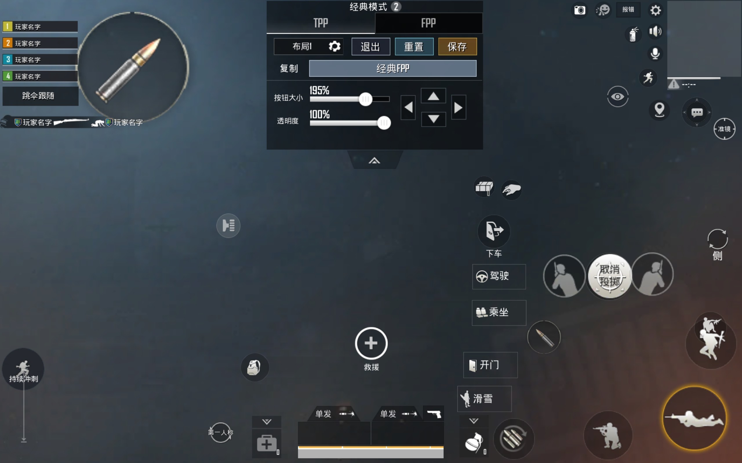 然后就是四指了,四指较三指就是多了右上角开镜键,空出右手大拇指可以控制左右探头,使出摇摆枪法,操作指法为:开镜开火探头走位全部一起,一气呵成,不拖泥带水就是四指较三指最大的区别。