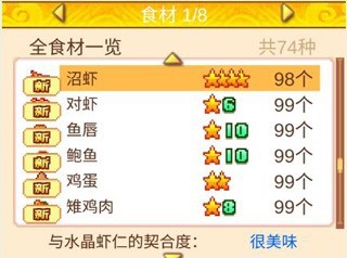 开发出新菜品后玩家还可以继续改良优化菜品的各项属性,形式与开发新菜时相同,选择合适的食材来开发即可提高原菜品的各项数值。