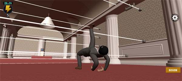2、玩家要通过各种姿势来过去激光,可以利用惯性的方式来度过难关。