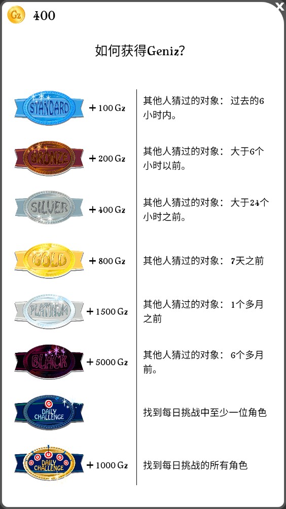 3、其他人猜过的对象:大于24个小时之前,可以获得400Gz。