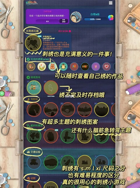 其中各种不同的图案可以进行选择,玩家可以根据需要快速进行刺绣的操作,其中内容非常的有趣,让玩家可以感受沉浸式的体验,其中的画面非常的精美,刺绣的音效比较真实,玩家还可以发挥想象力进行制作。