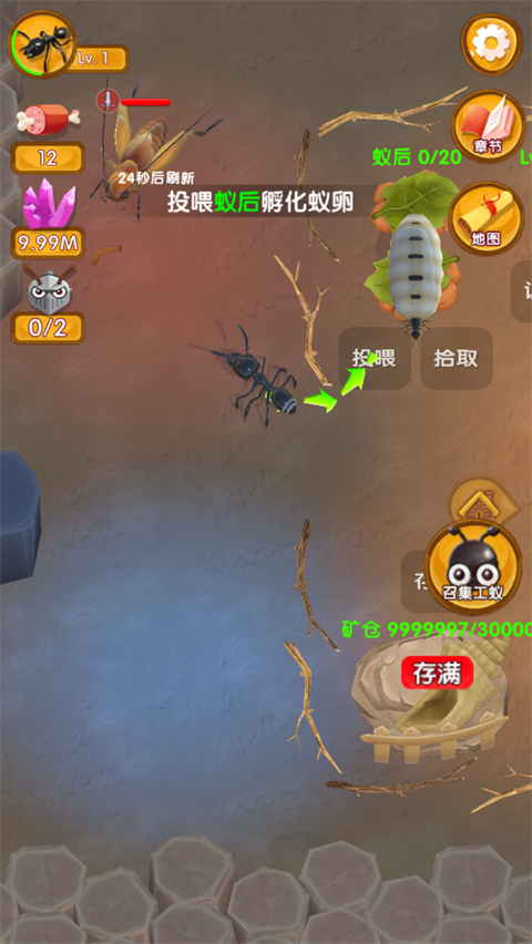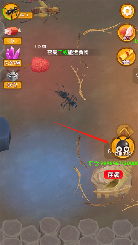 4、在地下世界建造蚂蚁王国,生产更多蚂蚁。
