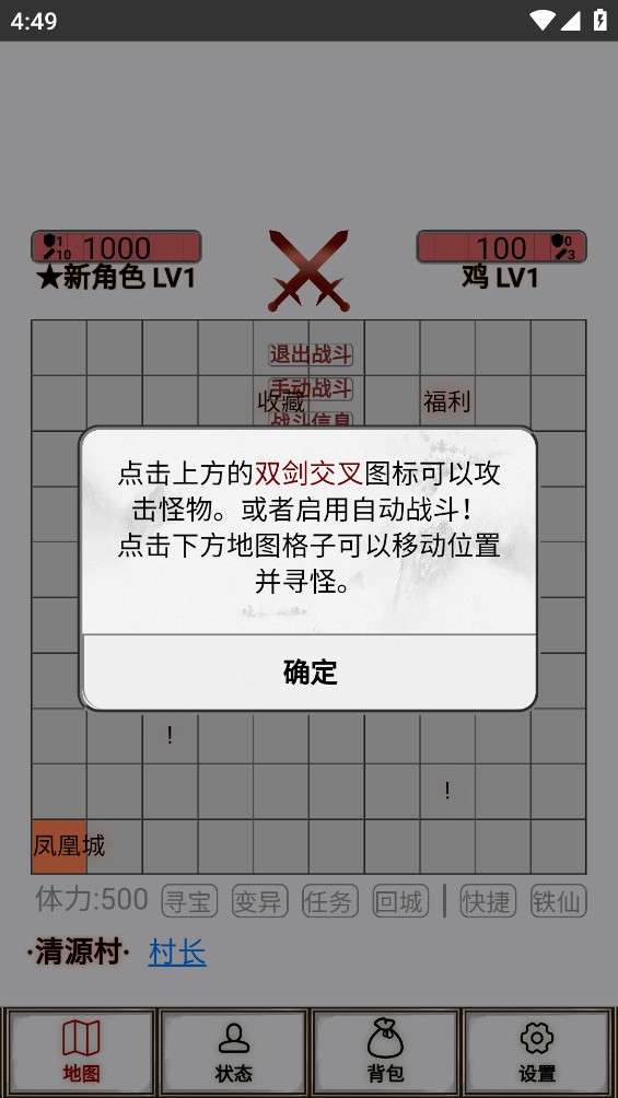 2.点击上方的双肩交叉的图标即可开启攻击怪物。