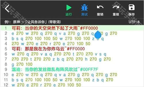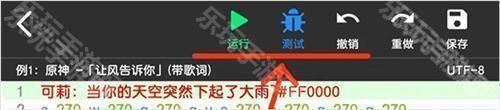 菜菜音乐盒提供了两种弹琴脚本测试方法,“ 运行 ”是指播放全部脚本,“ 测试 ”为播放左边序号有蓝色标记的一行或者多行脚本