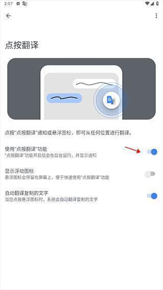 3、进入点按翻译页面找到“启用”,点击右侧的按钮即可开启
