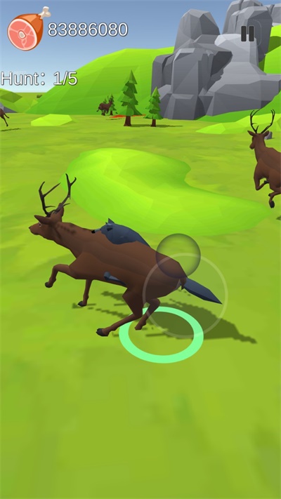2、通过虚拟摇杆进行操作,将更多的草食动物进行狩猎,非常有趣的过程。