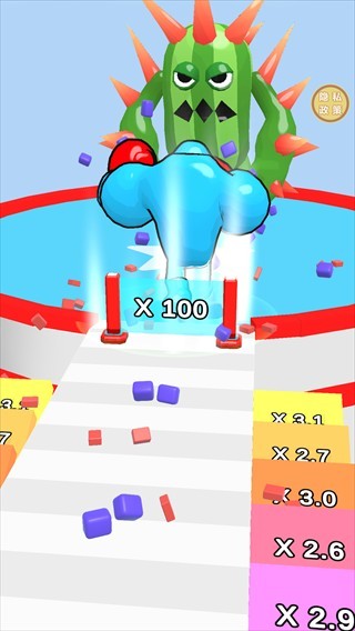 果冻拳王是一款以果冻为主角的动作格斗游戏。生动有趣的卡通画风设计了各种竞技场,无数果冻人正摩拳擦掌准备开战。个性化的皮肤让你可以自由搭配,威力十足不容小觑。每一拳都打得很过瘾,伤害也相当可观,让你能以最快的速度赢得最终胜利。通过手指滑动屏幕来操控果冻勇士们移动,躲避路上的障碍物,还要收集和自己颜色一致的哑铃,以增强果冻勇士的战斗力,最后在终点击败BOSS就能顺利通过关卡。