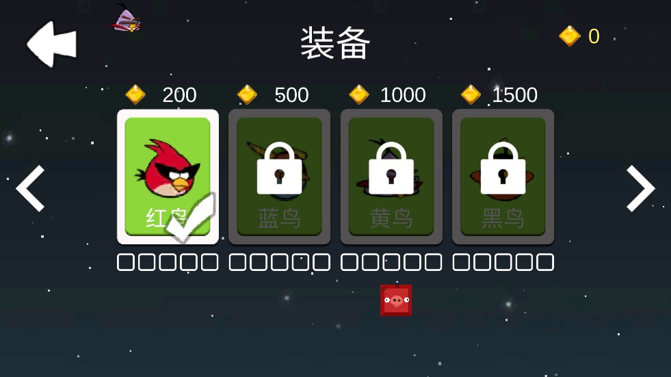 1、小鸟经过强化处理,同时自动解锁所有关卡,自主选择关卡进行挑战。