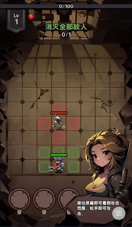 2、按住屏幕即可看到攻击范围,松手即可攻击。