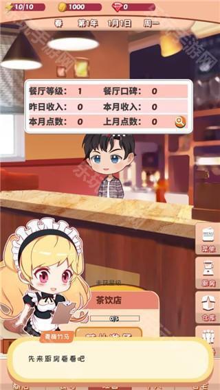 2、进入游戏后,开始和你的青梅竹马对话,了解店铺;