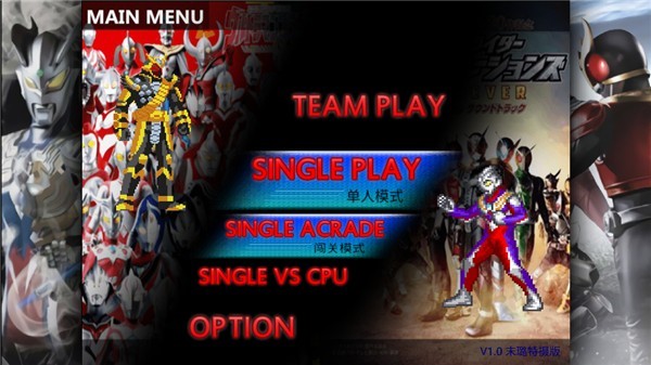 假面骑士大战奥特曼是一款像素的动作格斗游戏。玩家可以选择假面战士和奥特曼中的角色来进行战斗,而且还加入了很多其他的动漫之中的角色。每个角色都拥有独特的技能,每位假面骑士都非常强大。多种模式等待着您去解锁和体验,每个模式都是独立的完全没有任何限制。利用角色的超必杀技来挑战各种强大的Boss,同时需要灵活躲避敌人的攻击。通过不断升级并解锁更多玩法,随着等级的提升将获得丰富而精彩的内容。