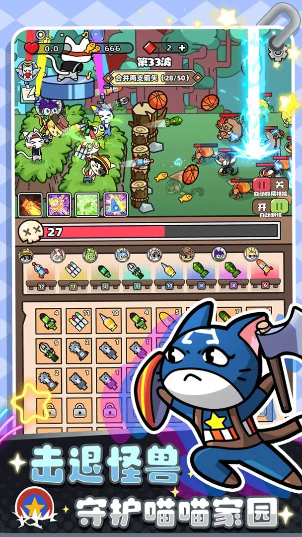 3、支持猫咪角色的培养与进化,使玩家在享受塔防乐趣的同时加深对游戏角色的情感投入。
