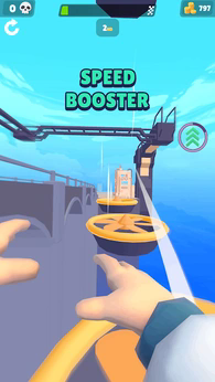 跑酷短跑是一款比较真实的跑酷动作游戏。以第一人称视角展开的跑酷之旅,通过手指左右移动控制角色。利用加速坡道让角色冲刺,靠近奔跑的NPC时会自动滑铲将其铲飞,但若撞墙或房屋则会摔倒。3D卡通风格场景色彩鲜明,角色动作流畅,让玩家感受高速奔跑的刺激。赛道多变,有直线、弯道、坡道和障碍区,考验玩家反应能力。