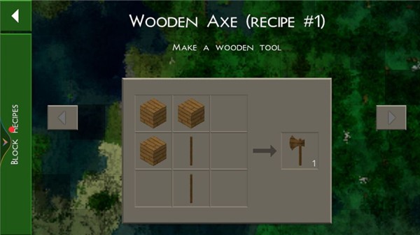 3、有了工作台,你就可以制作更高级的工具了。参照工作台旁的合成表,制作一把斧头。相比初始的石斧,斧头砍树的速度和效率将显著提高,这将为你的后续生存提供更强大的保障。记住,斧头需要定期维护,石斧损坏后要及时补给。