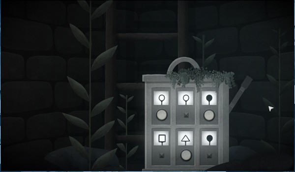 步骤:左上角为黑色三角,右上角为空心三角,中下为空心方块,之后向下拖拽右边的控制杆,然后向左横拉谜题板,点击里面的东西即可。