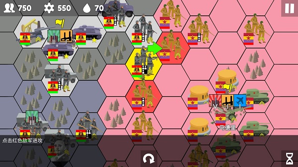 4、继续以上的操作,移动坦克、飞机、投石机等大型军争力量,消灭剩余敌军单位。