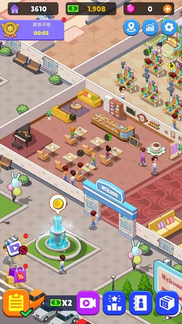 2、通过精心规划商业街、赚取金币、升级店铺及雇佣员工,可以帮助你提升整体的效率。