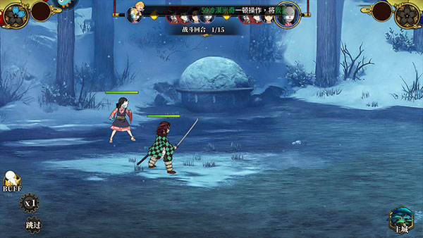 6、游戏战斗时属于挂机战斗,左下角可以加buff,还建议点击倍速。