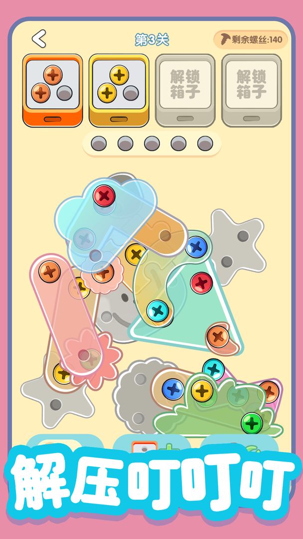 3、螺丝全拧掉采用闯关机制,关卡的难度会随着数量而逐渐增高。