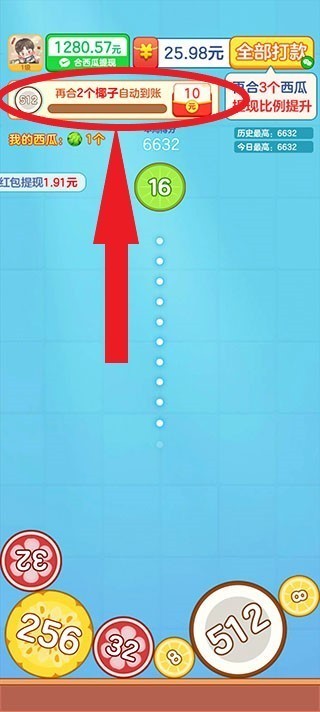 在游戏左上角可以查看合成任务,完成可获得大量红包。