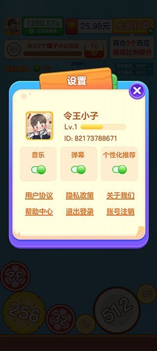 1、经典的 2048 游戏界面中,滑动手指控制相同西瓜的合并,使其逐步进化为更大的西瓜。