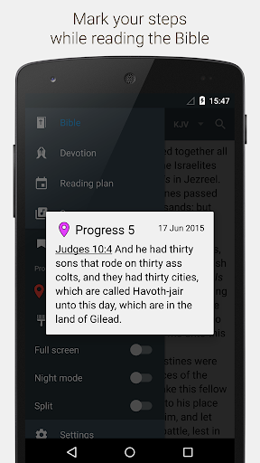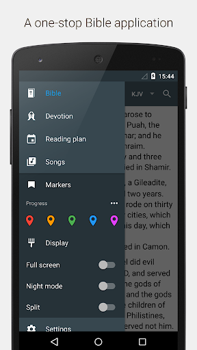 具备阅读计划、书签、笔记及进度自动保存等多项实用功能。该软件无需联网,用户可以随时随地尽情沉浸于阅读之中。此外还可以自由调节主题外观颜色、字体大小、章节选择方式以及夜间模式等个性化设置,让每一次的阅读体验都独具匠心。