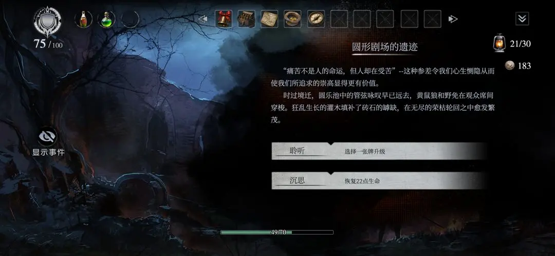 1、在推进过程中,玩家会遭遇大量随机事件,包括战斗外的选择分支、资源交换、风险决策等。
