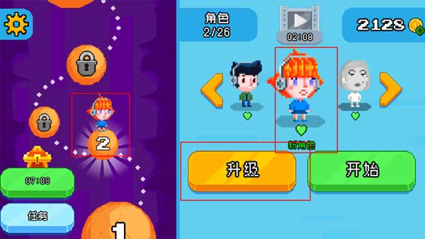 6、下面就可以开始接下来的挑战了,玩家可以选择新的角色进行关卡通关,还能升级角色属性呢。