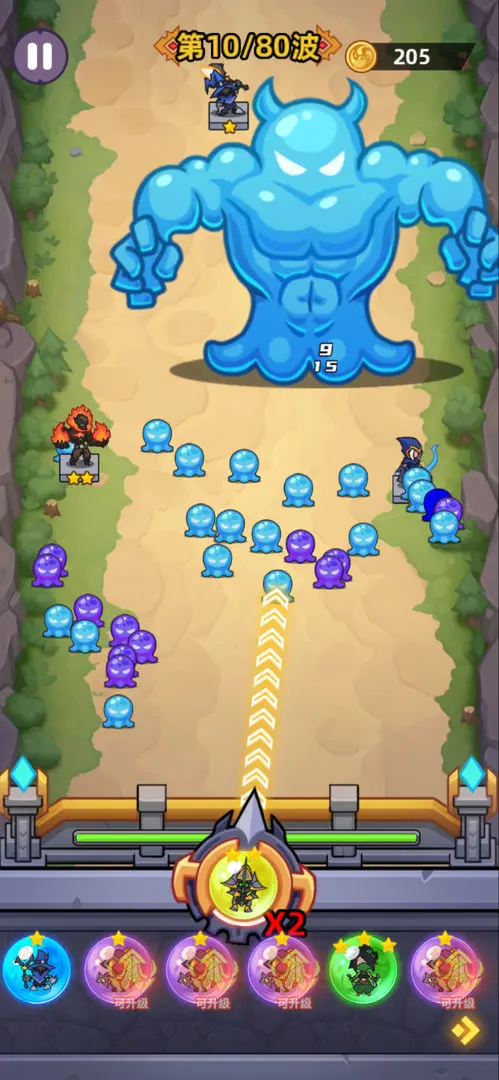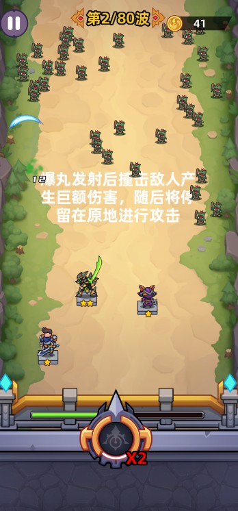 向后拖拽炮台,调整角度,发射爆丸攻击敌人