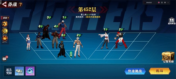 格斗家上阵限制:同一名格斗家不可同时出战先锋战与后卫战,需提前拆分两队阵容。