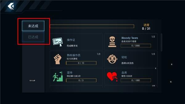 3、返回上一级,看到“成就”这里有已经达成的和还没有达成的,帮助玩家记录;