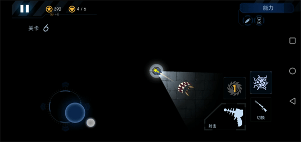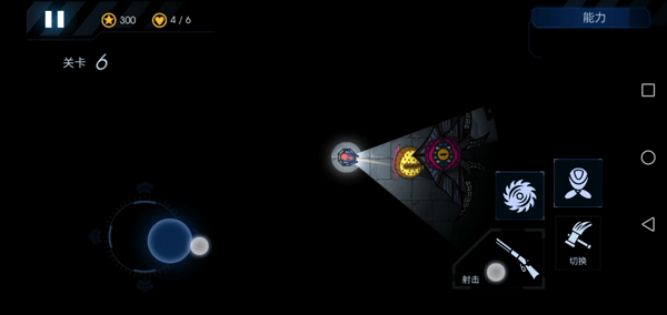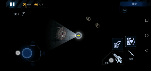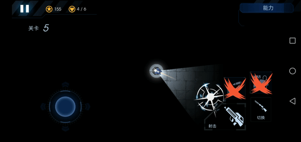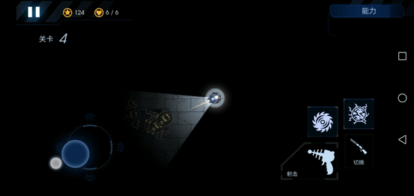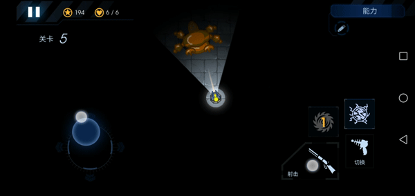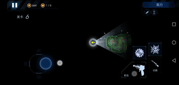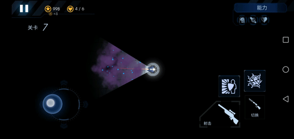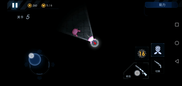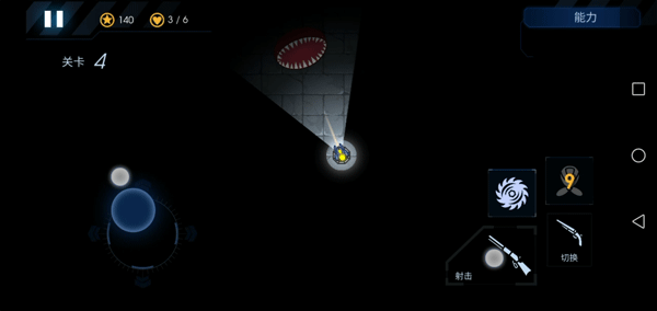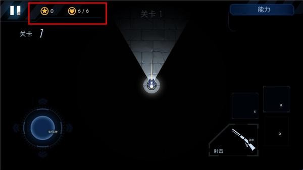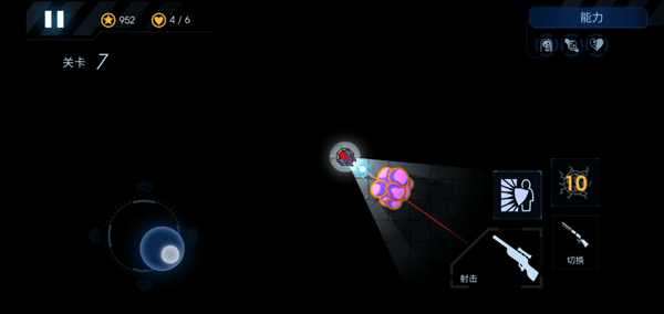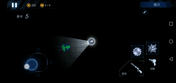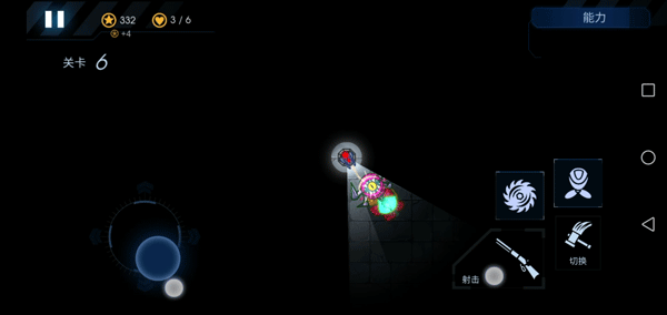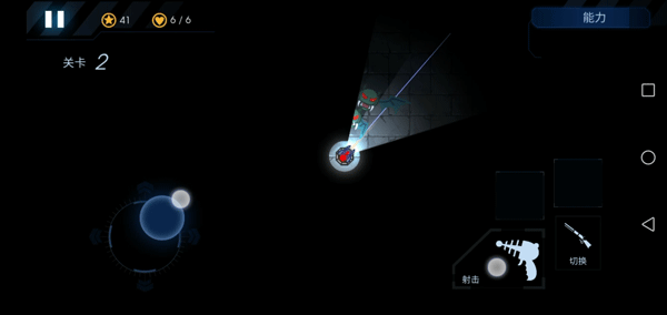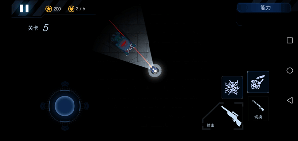5、正式进入后,左下角是摇杆负责视野和射击的方向,右下角是射击;