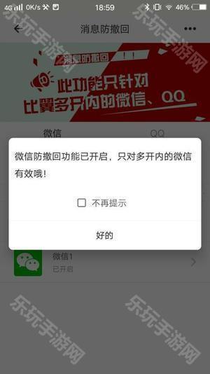 注:此功能只支持多开上的微信或者QQ,若刚开始登录显示消息已撤回但看不到被撤回内容,属于正常现象,因这些消息是此次登陆之前的消息。