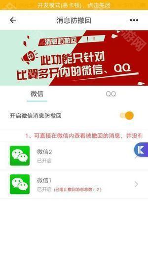 2、在专属应用中打开消息防撤回功能,并将开关开启