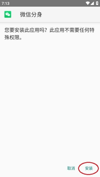 7、直接点击“安装”即可,安装成功桌面就会出现一个“微信分身”的应用。