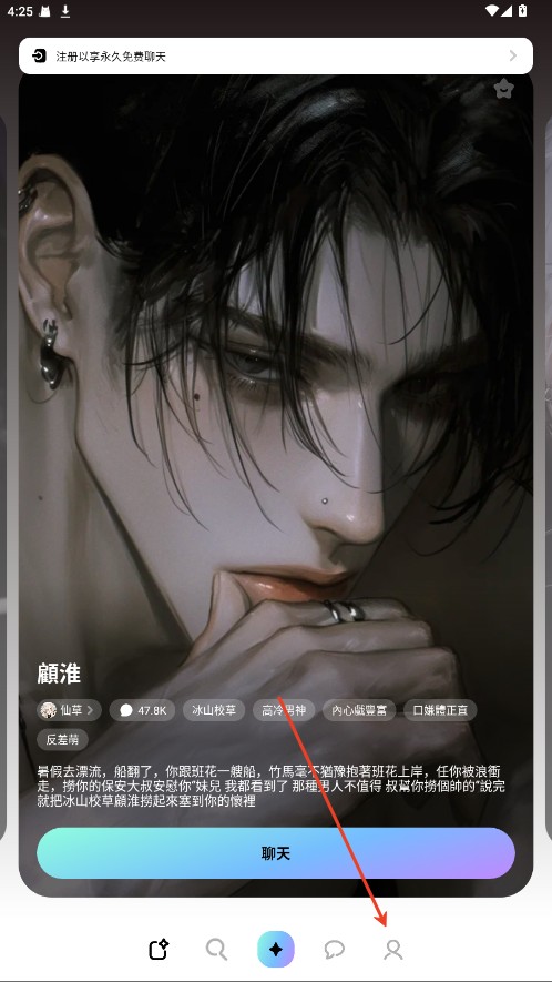 1、高度自由的角色设定:无论是温柔体贴的恋人还是傲娇王子,都可由用户亲自塑造,带来极强的参与感。