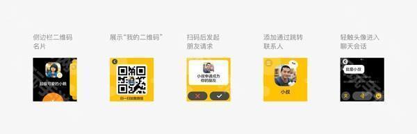 二维码加朋友:在侧边栏轻触头像展示孩子的二维码名片,亲人、老师可以用微信扫码并发起朋友请求,在手表通过请求后会添加为朋友。