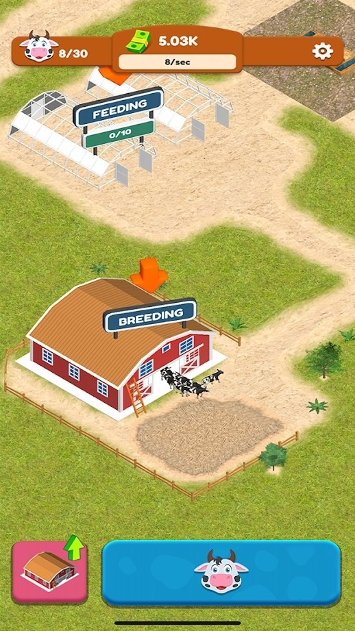 3、农场的建设非常的有趣,不断扩大牧场的规模,这样就可以在牧场中喂养更多的奶牛了;